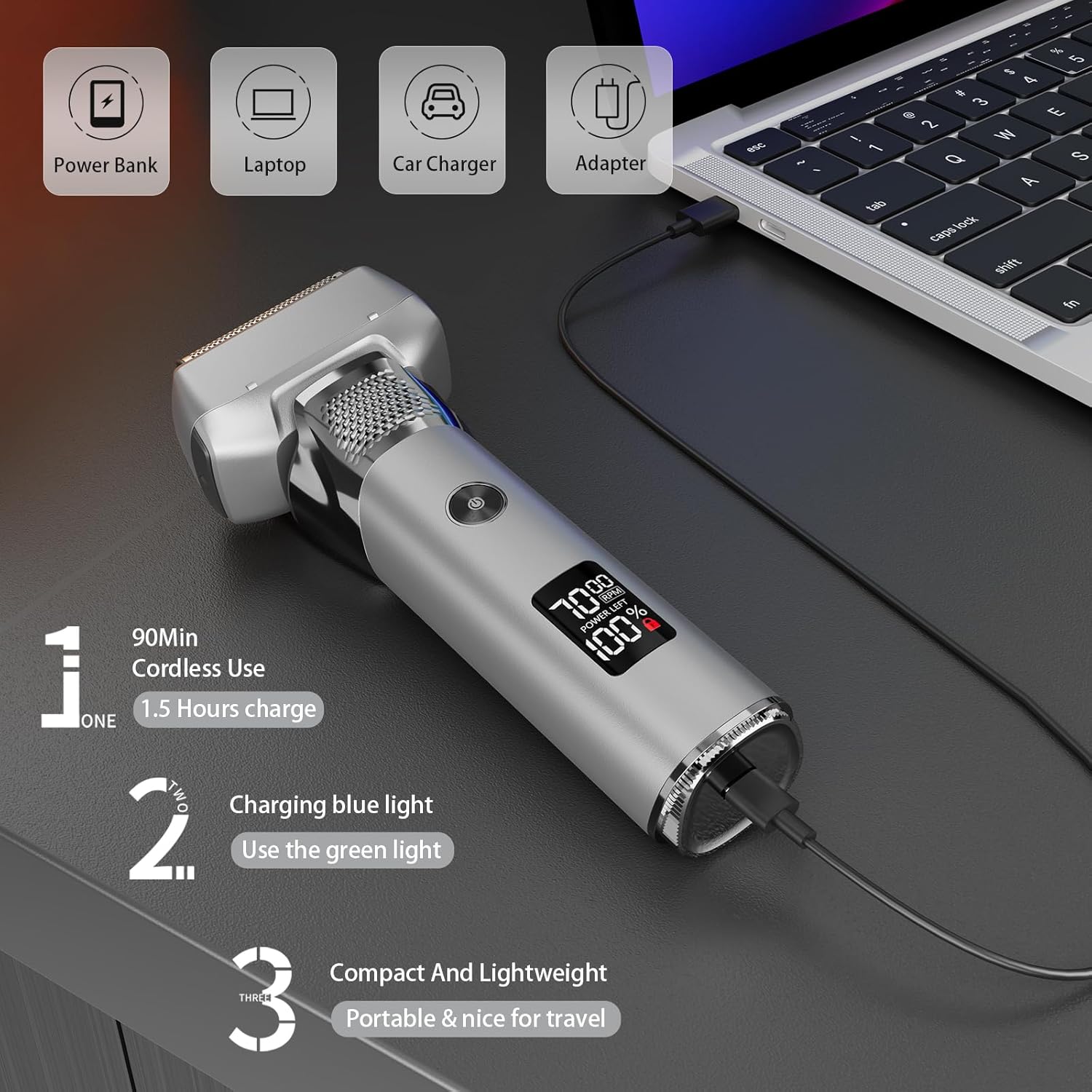 【Quick Charge, Long Life】Men’s Foil Shaver Fully charged in just 1.5 hours, electric shavers for men offer up to 60 minutes of use.Cordless Electric Rechargeable Razor Its USB charging system makes it easy to power up anywhere